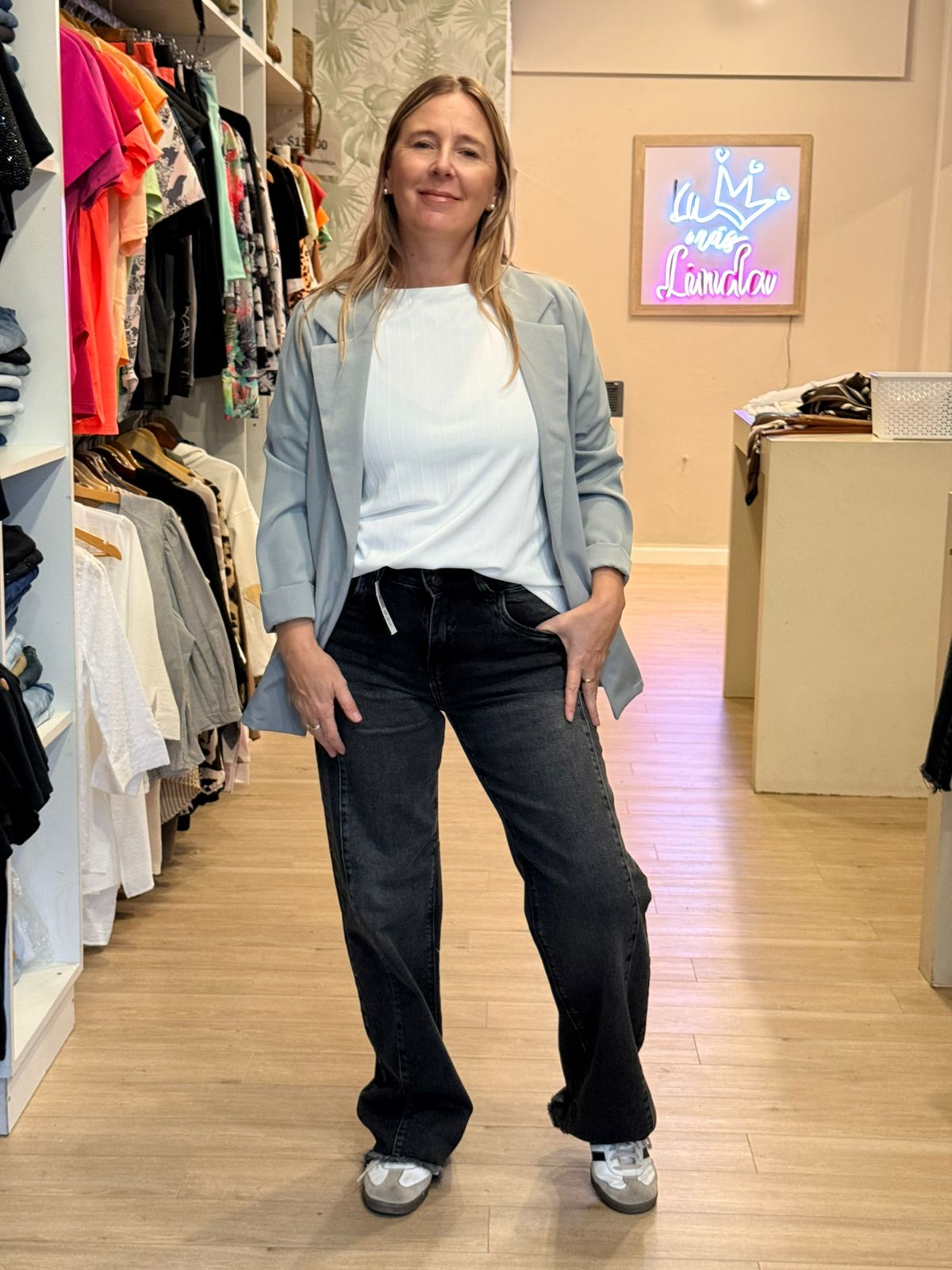 Blazer de corte clásico en tono gris claro, ideal para sumar elegancia y versatilidad a cualquier look. Confeccionado en tela liviana y de caída suave, es perfecto para usar tanto en outfits formales como en combinaciones más relajadas. Presenta solapas tradicionales, mangas largas con terminación doblada y un calce recto que favorece distintas siluetas. Su diseño abierto, sin botones visibles, le aporta un estilo moderno y descontracturado.